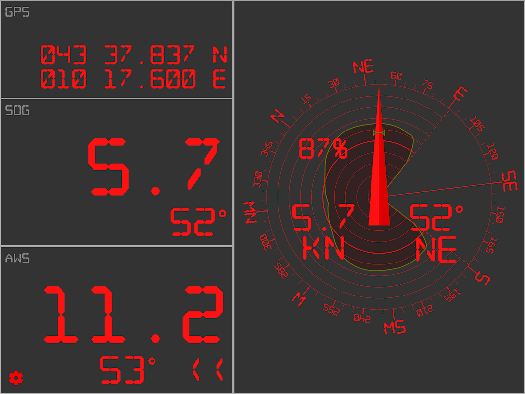 * Windinformationen (AWS, AWD, TWS & TWS in Bezug auf das Boot und nach Norden)