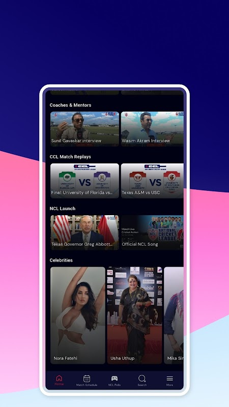 Die NCL Cricket App ist die offizielle Online-Plattform für digitales Video-Streaming der National Cricket League (NCL) USA. Die NCL Cricket App überträgt alle NCL Cricket-Spiele live sowie Spielhighlights als VODs. Die NCL League startet ihre 2. Saison am 3. Oktober 2025 in Dallas, Texas, USA und endet am 15. Oktober 2025. Die NCL kehrt mit 11 Nächten voller Action im rasanten Sixty Strikes T10-Format zurück, bei dem jedes Spiel nur 90 Minuten dauert. Es ist schnell, wild, mit kraftvollen Schlägen, unvorhersehbaren Abschlüssen und spannender Action, die Sie von Anfang bis Ende auf Trab hält. Sie werden Zeuge, wie die größten Weltklassespieler und legendären Mentoren von Cricket-Ikonen sowie aufstrebende Talente auf höchstem Niveau gegeneinander antreten. Die NCL Cricket App umfasst umfangreiche Funktionen wie Fan-Engagement-Umfragen, Offline-Wiedergabe, Casting, Bild-in-Bild usw. Die NCL Cricket App ist derzeit auf über 25 Geräten verfügbar, darunter Mobiltelefone, Tablets, Smart-TVs und Streaming-Geräte.