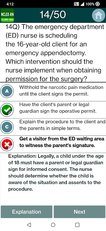 NCLEX-RN-Praxistestfragen-App zur Prüfungsvorbereitung für Ihre NCLEX-RN-Prüfung (National Council Licensure Examination-Registered Nurse). Erfolgreich bei Ihrer NCLEX-RN-Prüfung mit unseren über 10.000 Übungsquizfragen.