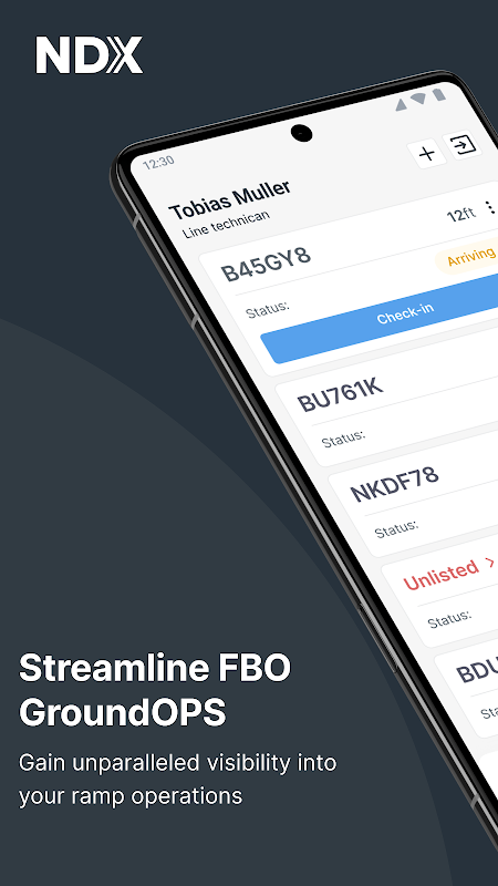 Die intuitive Benutzeroberfläche bietet eine Mobil- und Web-App, mit der Benutzer Flugzeuge in Echtzeit verfolgen, Berichte erstellen und Schäden identifizieren können. Die App verfolgt außerdem Flugbewegungen, Schleppvorgänge und Flüge und zeigt Statistiken in der Web-App an. NDX Ground Ops ist eine automatisierte Anwendung, die Mitarbeitern hilft, Flugdaten schnell und einfach anzuzeigen.