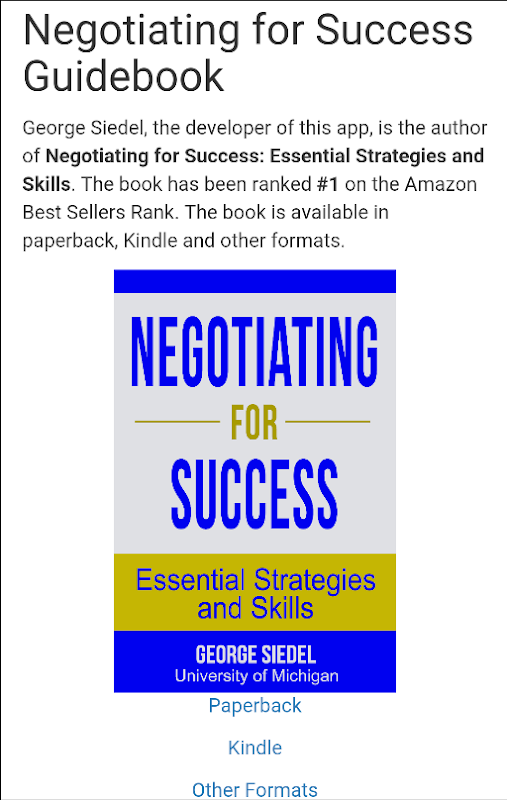 Negotiation Planner includes links to free videos from an online course offered by the University of Michigan and Coursera, “Successful Negotiation: Essential Strategies and Skills.” The course is taught by George Siedel, the award-winning professor at the University of Michigan who developed Negotiation Planner. Over 59,000 learners from 198 countries joined the first offering of the course. They ranged from CEOs to inexperienced negotiators. The course includes a negotiation exercise that allows you to test your skills and obtain feedback. Here are some learner comments about the free videos: