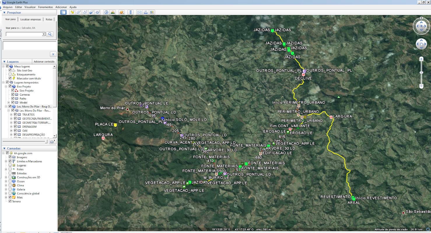 O sistema também pode operar no modo de projeto, permitindo ao usuário “projetar” em campo, definindo a posição de bueiros, locais de implantação de cerca, remanejamento de cerca, pontos de ônibus, valetas de proteção de corte e aterro, descidas d’água, dissipadores de energia, etc.