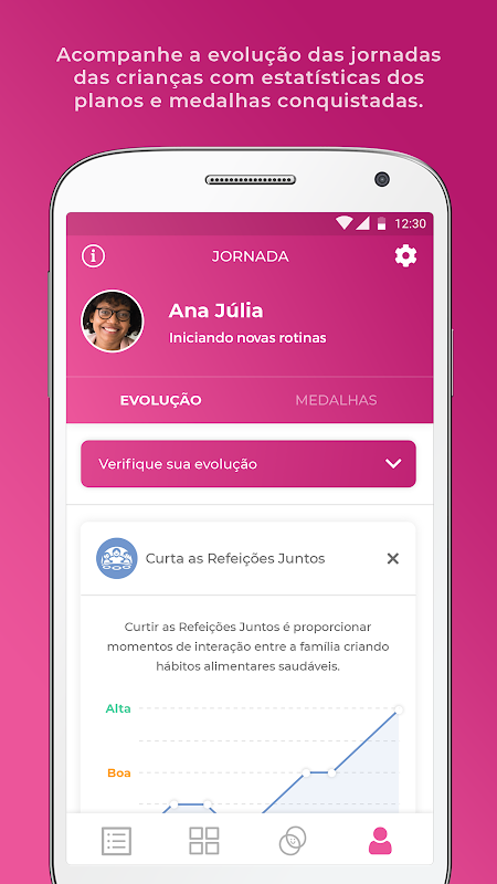 Comer alimentos saudáveis e praticar atividades físicas nunca foi tão divertido. Com esse aplicativo exclusivo, em poucos cliques você e suas crianças serão desafiadas a cumprir missões saudáveis.