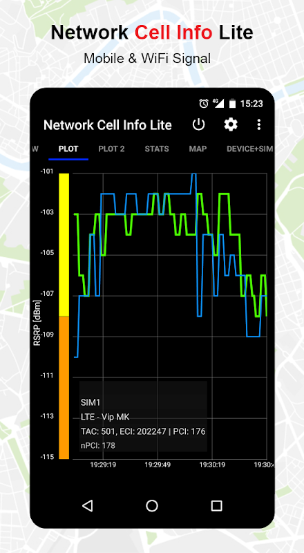 Using Network Cell Info Lite App When you facing slow WIFI speed, just one tap and the app will refresh and repair your WIFI connection. You can also check your WIFI signal strength. A very useful small size application. View your cell phone coverage heat map for 2G, 3G, and 4G LTE to see real-time personal cellular network signal information. See performance by location so you can see how signal strength is at home, in your neighborhood, at work, on the highways, or anywhere else. Track your journey to see signal strength at each location through your mobile life. If you see your phone reception is poor, check Network Cell Info Lite to find a spot for better signal strength.