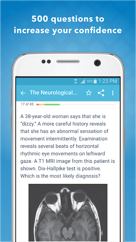 Mit diesem dynamischen Tool können Sie Fragen unterwegs markieren, um Problembereiche einfacher zu überprüfen. Detaillierte Analysen ermöglichen es Ihnen, Ihre Statistiken und Fortschritte zu überprüfen sowie Ihre Stärken und Schwächen zu entdecken. Durch eine strenge Überprüfung der wichtigsten Konzepte und Fakten bietet Ihnen diese Ressource die perfekte Möglichkeit, Ihr Wissen über Neurologie in Vorbereitung auf eine NBME- (Regal-) oder USMLE-Prüfung zu bewerten.