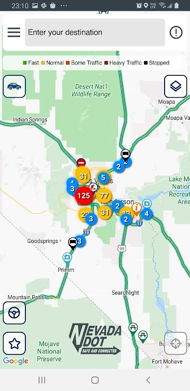 Die Nevada 511-App bietet Autofahrern Autobahn- und Verkehrsinformationen nahezu in Echtzeit, um ihnen bei der sicheren Routenplanung zu helfen. Dazu gehören Informationen zu Bauarbeiten, Vorfällen, Straßensperrungen und Wetterwarnungen auf Straßen im ganzen Bundesstaat.