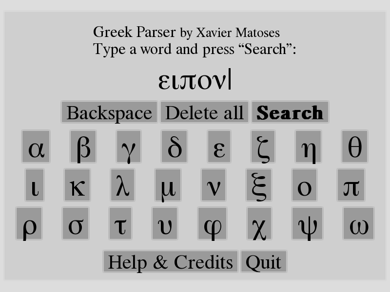 1. Type a Greek word pressing on the buttons. Then press “Search” or press “Return”.