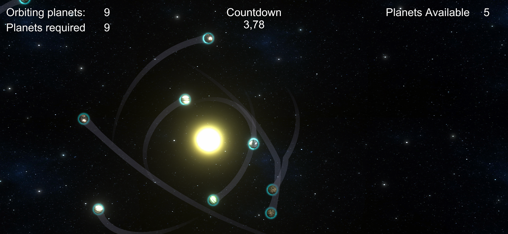 Schicke Planeten um die Sonne, um ein kleines Sonnensystem zu bilden und mit mehr Planeten ins nächste Level aufzusteigen.