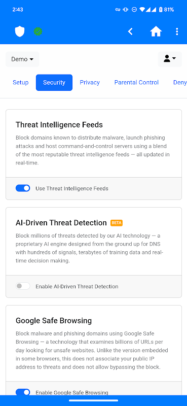 Erhöhte Sicherheit und Datenschutz: Profitiere von NextDNS' robusten Filterfunktionen, um deine Online-Aktivitäten zu schützen. Ein App-Sperre mit biometrischer Authentifizierung oder PIN-Code sichert deine NextDNS-Einstellungen vor neugierigen Blicken.