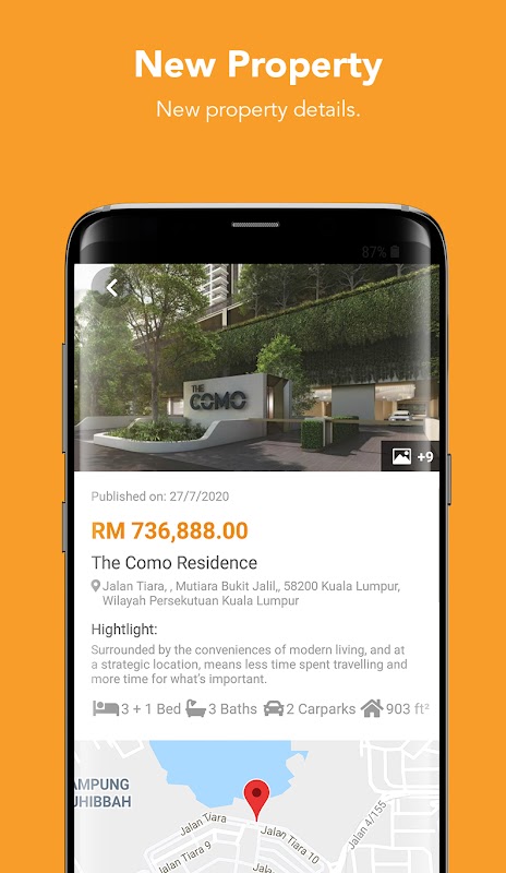 Immobilienwerbung bietet erweiterte Funktionen wie eingebettete Video- und 3D-Home-Tour-Funktionen, eine beeindruckende Erfahrung in der Nextsix-App, die Ihre Kaufreise für Eigenheime erleichtert. Sie werden die Eigenschaft bereits vor einer tatsächlichen Besichtigung besser verstehen. Über die In-App-Freigabefunktion von Nextsix können Sie alle Immobilienanzeigen ganz einfach an Freunde und Familienmitglieder für alle Messaging- und sozialen Plattformen freigeben.
