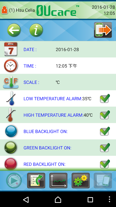 NFC OUcareTM is an intelligent and powerful application software which works on Android based mobile devices helping you manage body temperature or bath water temperature daily at home. Having supported digital thermometers connected to mobile devices by NFC, you can assign the thermometers to certain user then read back temperatures in an easy-to-read way. You can track measurement records, view the graphic trend on mobile devices, or even share the records to your doctor or family by E-mail and SMS.