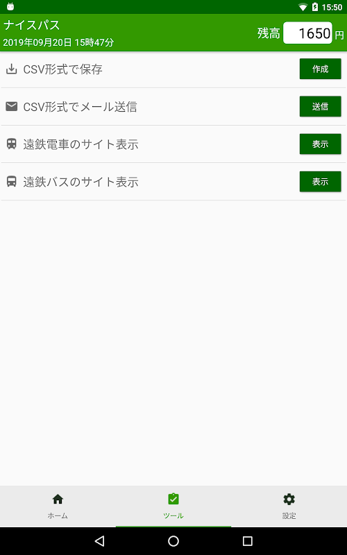 遠鉄電車/遠鉄バスの利用履歴を最大20件表示します。