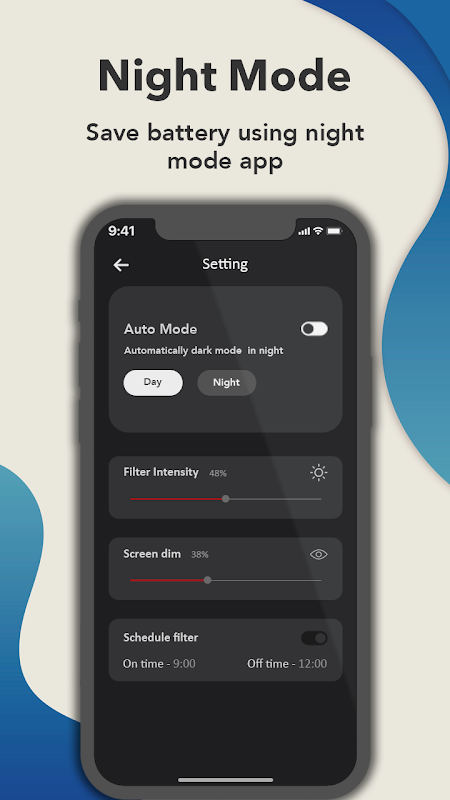 Nachtmodus - Die Batterie- und Augenschoner-App passt den Bildschirm Ihres Geräts an die Tageslichtzeit an und filtert den blauen Lichtstrom, der von Ihren Smart-Geräten nach Sonnenuntergang ausgestrahlt wird, und schützt Ihre Augen mit einem weichen und angenehmen Rotfilter.