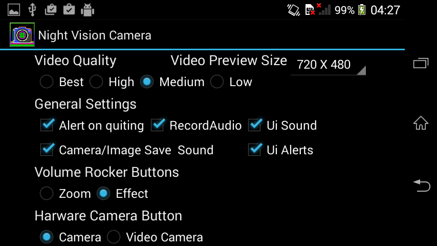 Great Night Vision Simulator für die Aufnahme von Videos und Bilder aufnehmen.