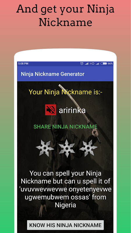 Holen Sie sich das Ninja Spitznamen Ihrer Freunde und nennen sie von ihm und Spaß haben.