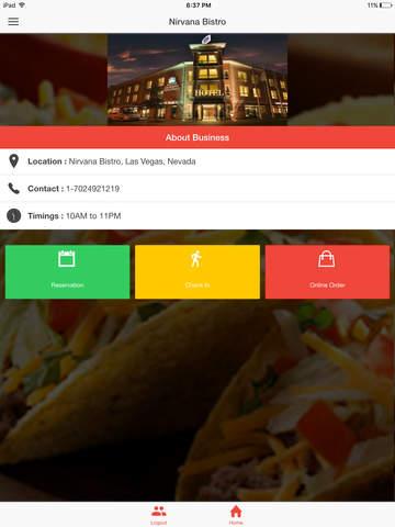 Consumer-Anwendung Online-Reservierungen mit Vorbestellung erstellen, Check-Ins mit Vorbestellung und Online-Bestellung (Takeout und Lieferung) für von Nirvana XP-Plattform angetrieben Unternehmen.