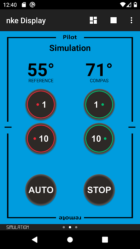 nke Display ist eine Anwendung zum Anzeigen und Aufzeichnen von Daten vom nke-Bus auf einem Android-Smartphone oder -Tablet. Sie können die anzuzeigenden Daten auswählen, um Ihr Dashboard zu personalisieren. Mit den in Premium-Funktionen zusammengefassten Fernbedienungen (Kauf über die Anwendung) können Sie den nke-Piloten steuern (Auto, Stopp, +1, -1, +10, -10, Moduswechsel) und die Anzeige der Bildschirme ändern ( Seitentasten, OK, Tastenfeld hoch - runter - links - rechts, Kurzbefehle A - B - C - D).