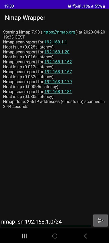 Dies ist ein Wrapper um den Nmap-Netzwerkscanner, der für Android kreuzkompiliert wurde.