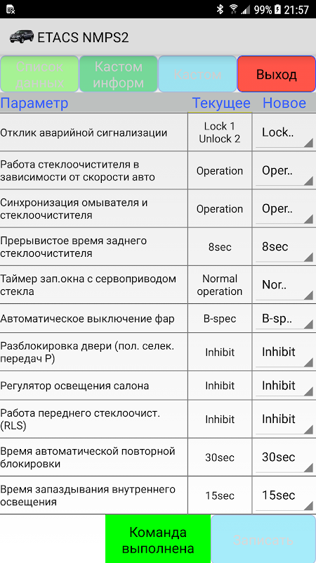 Die begrenzte Austauschrate von ELM327-Adaptern über Bluetooth garantiert keine Änderung von Parametern im Anpassungsmodus mit einem Bluetooth-Adapter.