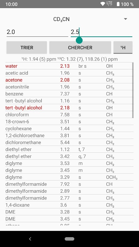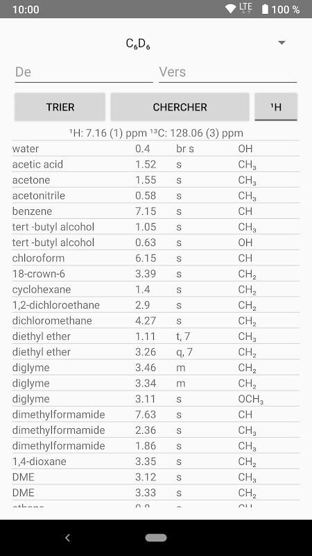 4) Ordnen Sie die Ergebnisse standardmäßig, alphabetisch oder nach NMR-Verschiebung.