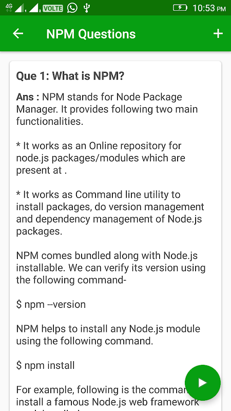 Einführung in Node.js Interview Praxis App mit den meisten ausgewählten Fragen & Antwort für Node.js Interview & Mittlerer Stapel Entwickler. Diese Anwendung ist eine hervorragende Adresse für alle Ihre Node.js Interview Fragen.