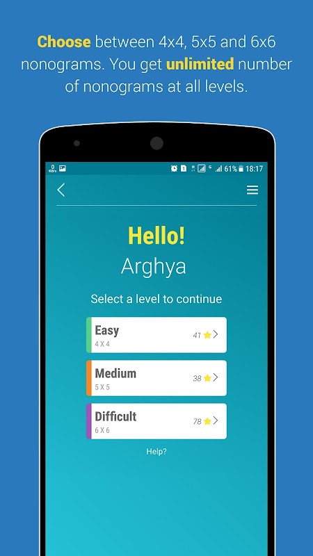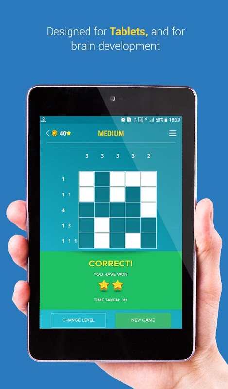 This one, though, is pure logic, without any calculation required. Our Nonogram app features unlimited number of nonograms, which is different from most other Nonogram apps which give you only a limited number with pre-fed designs.