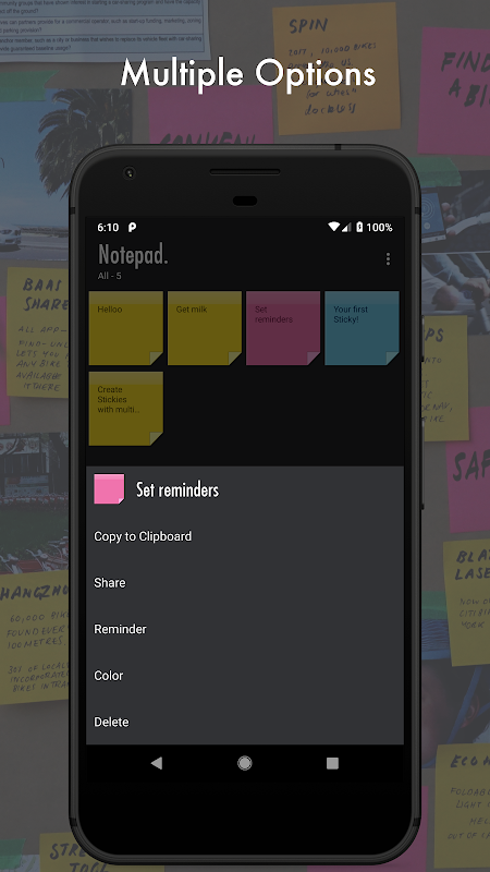 Now you can easily take Notes with Notepad. Create unlimited Notes in the form of beautiful Stickies. Multiple colours in notes helps organise your notes like never before.
