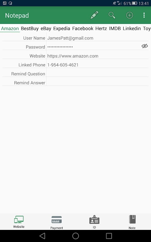 Notepad is a convenient tool to manage personal information like website account and password, credit card information, membership card information, drivers license, passport information... Template is provided to facilitate the save of different kind of information. Notepad support save picture. Don't what to input text? just take a photo and save it. All your information is protected with 256-bit AES encryptionpassword and save on local device, don't worry the information disclosure on internet.
