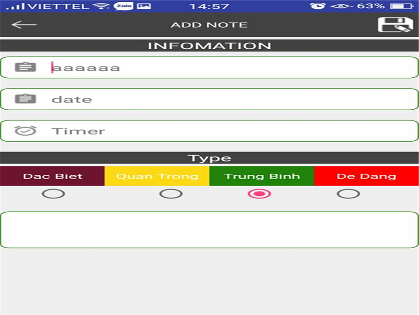 Step 2: input all note of you includes ( name, day, timer, type note, notes)