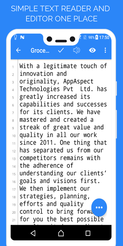 Notepad - Text Editor ist die einfache App zum Öffnen, Bearbeiten, Löschen, Umbenennen und Speichern von Textdateien auf und von der SD-Karte.