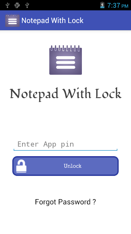 Notepad with Lock is a very nice application for saving our personal information. In this first it said to you enter your password and a hint. The is usable for when you forget the password then you can enter the hint and easily can change your password. In this the data will be auto save if you suddenly press the back button. for deleting any note long press on that note and then a delete option will be appear and then you can delete the note. you can edit the note any time and read. it will care your personal information.