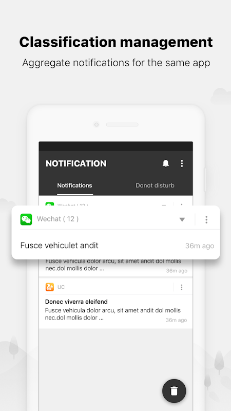 Notification Manager will categorizes notifications Automatically based on the contents of APPs. You can Customize notifications during on your need.