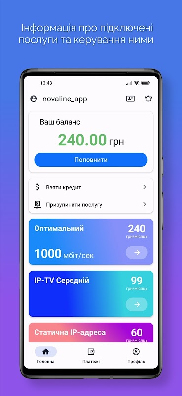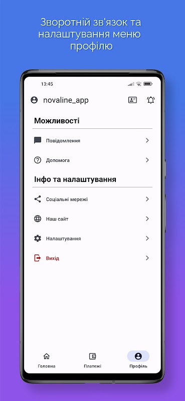 Die Anwendung "Novaline" ist ein bequemer Online-Ersatz für Ihr persönliches Konto.