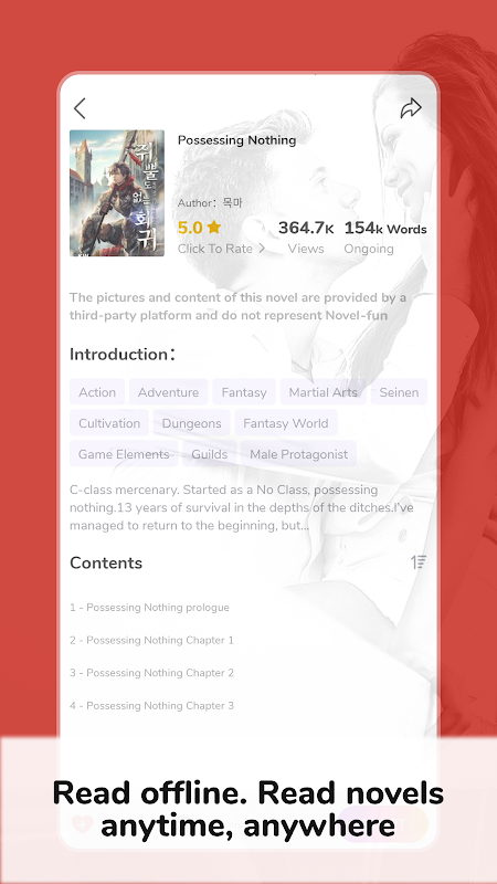 Laden Sie Romane herunter, um Offline-Lesen zu genießen, auch ohne Internetverbindung. Sie müssen sich keine Sorgen um die Datennutzung machen. Es ist völlig praktisch.