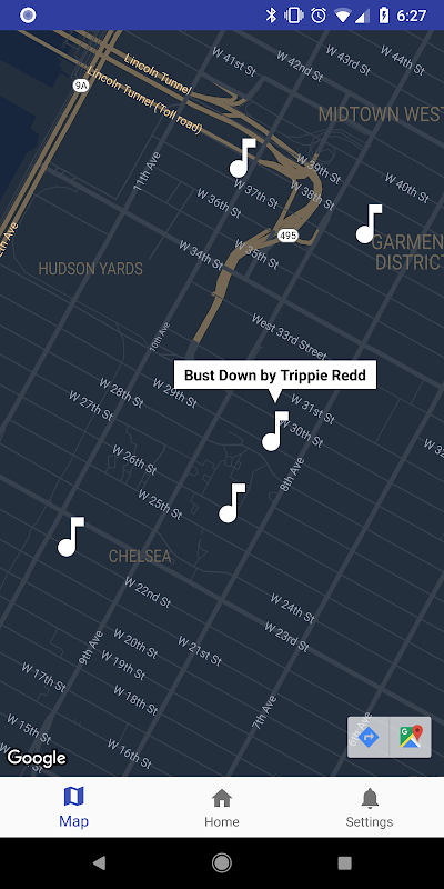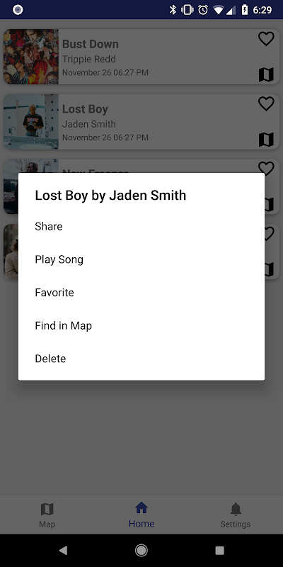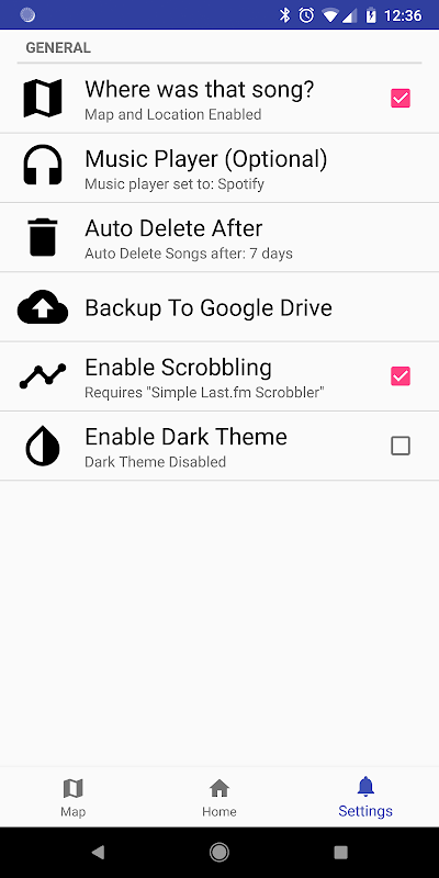 Want to see where you heard the song? Enable location in the settings and see your musical journey on a dark themed map. You can also jump to a song in the list by tapping the map icon.