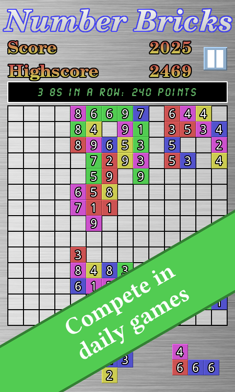 Legen Sie die Tetromino-Steine auf das Brett. Gefüllte Zeilen und Spalten werden gelöscht, wodurch Platz für neue Formen geschaffen wird und Sie Punkte erhalten. Das Spiel endet, wenn kein Platz mehr für einen weiteren Tetromino-Stein auf dem Brett ist. Spielen Sie entweder den Freizeitmodus und versuchen Sie, Ihren Highscore zu schlagen, oder nehmen Sie am täglichen Spiel teil und treten Sie gegen Spieler auf der ganzen Welt an, um zu sehen, wer an diesem Tag die meisten Punkte erzielen kann.