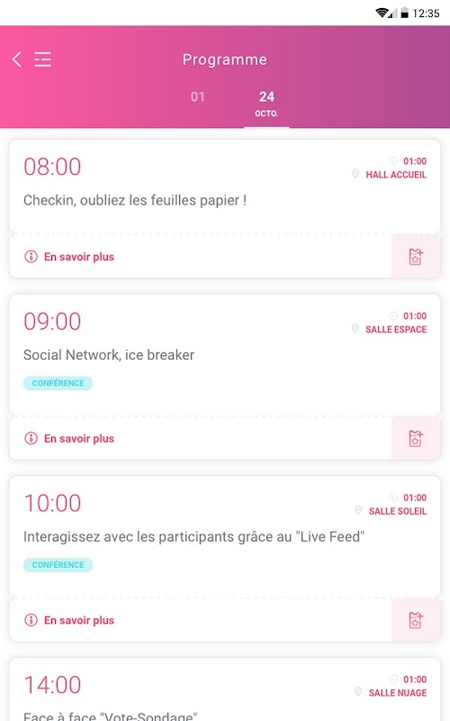 NumEvent fait vivre à vos participants une expérience originale et interactive directement sur son leur smartphone. Numevent devient le compagnon personnel du participant pendant l’événement.