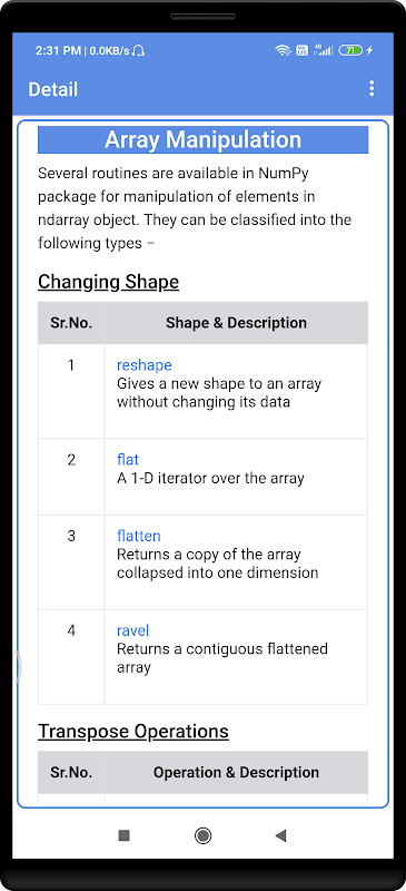 NumPy Tutorial APK -Informationen