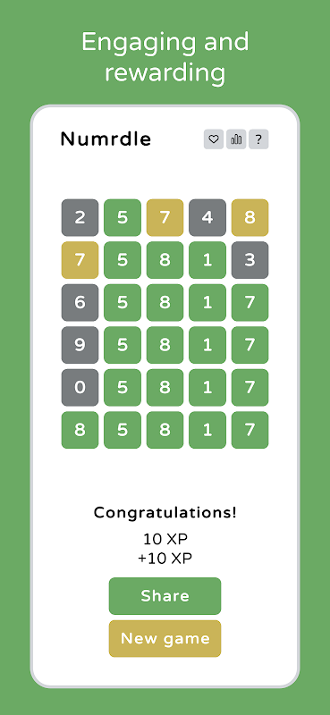 Numrdle ist ein lustiges, cooles und lässiges Spiel, bei dem Sie eine 5-stellige Zahl erraten.