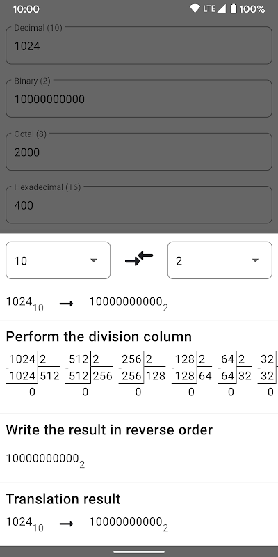 Einfacher und intuitiv zu bedienender Konverter und Rechner für Zahlensysteme mit vollständiger Lösung und Dezimalbrüchen.