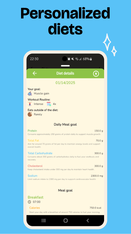 💡 KI-gestützte Ernährungspläne: Erhalten Sie individuelle Ernährungspläne, die auf Ihre Fitnessziele und Ihren Lebensstil zugeschnitten sind. NutriWiz passt Ihren Plan an, während Sie Fortschritte machen, und hält Sie so auf dem Weg zum Erfolg.