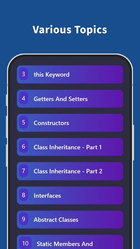 Wenn Sie von dieser App lernen, können Sie die grundlegenden theoretischen Konzepte von OOP - Object Oriented Programming in kürzester Zeit verstehen. Die Informationen sind leicht zu verstehen, sodass Ihre Reise einfacher wird.