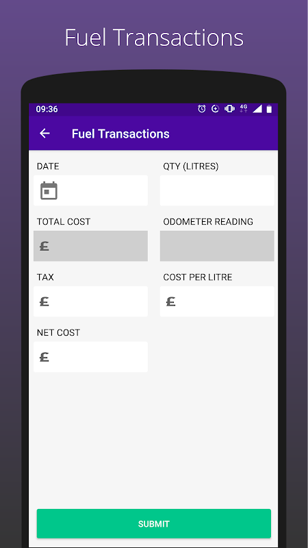 - Kraftstoffgeschäfte aufzeichnen und Foto der Quittung hochladen.