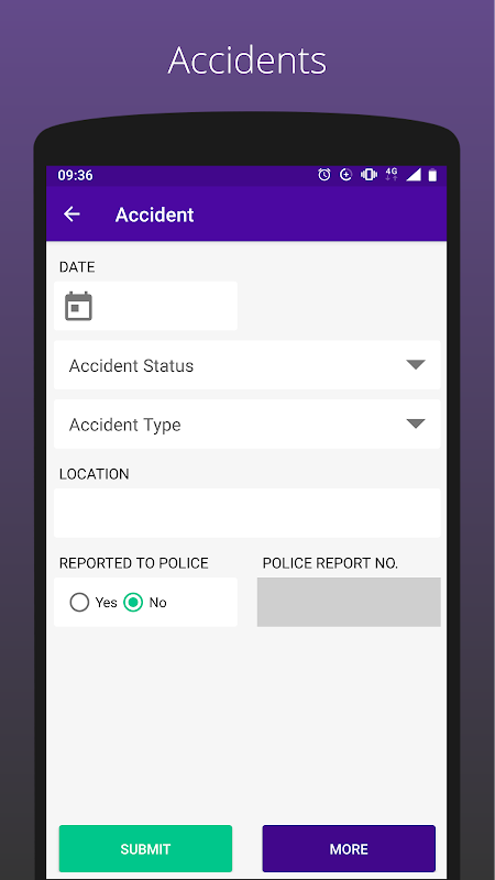 - Notieren Sie Unfalldetails, laden Sie Fotos hoch und senden Sie Benachrichtigungen an den Flottenmanager