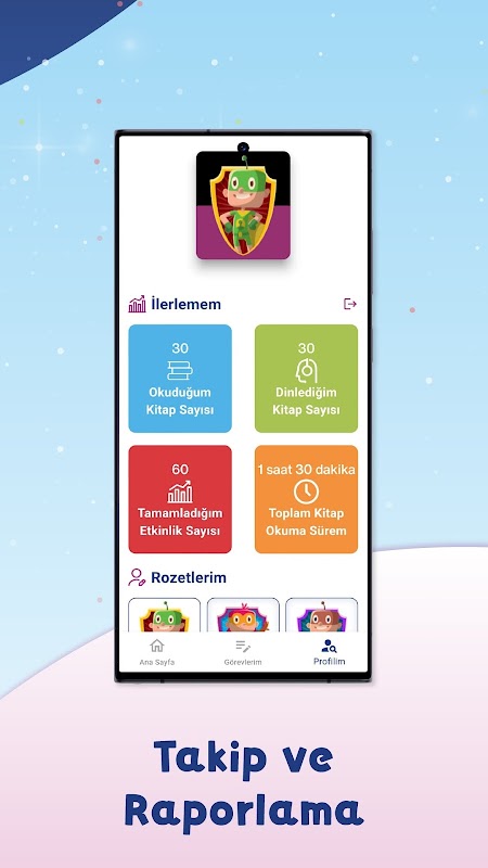 Sie können Ihre Leistung sofort auf der Seite „Mein Profil“ verfolgen, die Abzeichen, die Sie erhalten haben, als Ihr Profilbild festlegen und herausfinden, wie viele Bücher Sie lesen müssen, um das nächste Abzeichen zu erhalten.