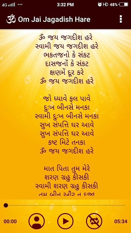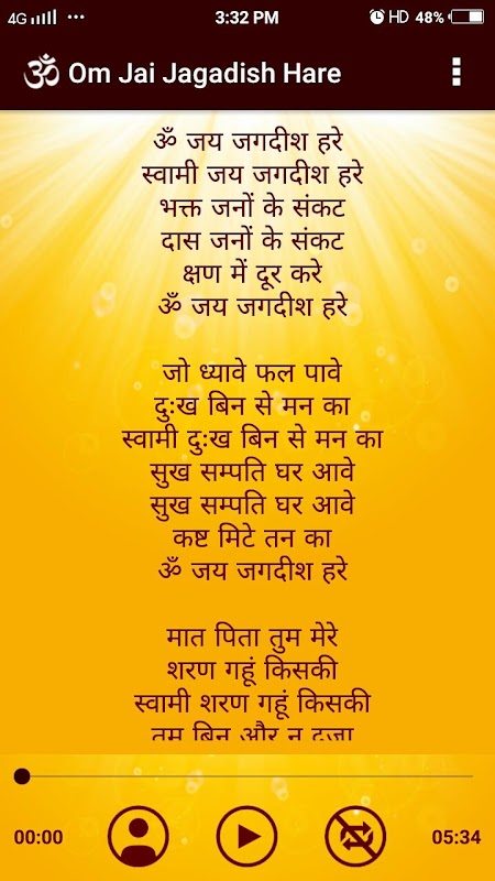 - No internet requirement to listen Om Jai Jagdish Hare.