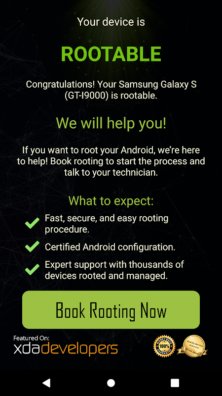 Wenn Sie zu den Glücklichen gehören und feststellen, dass Ihr Android rootbar ist, können Sie auf die Schaltfläche „Rooting jetzt buchen“ klicken, um eine Rooting-Sitzung mit einem unserer Experten zu vereinbaren.