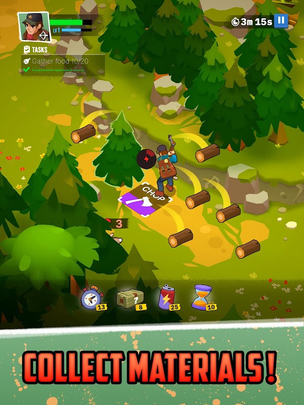- Basteln & Bauen: Sammle Materialien, um wichtige Verteidigungsanlagen, Waffen und Basisgebäude zu bauen.