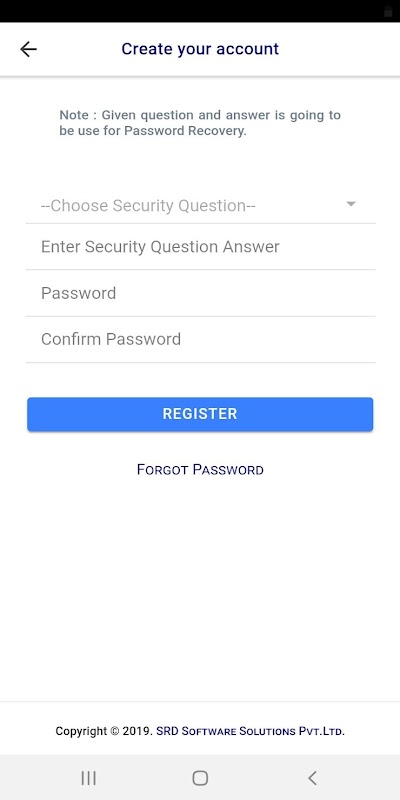 **Note : We don't store your data on any online server. We use your local device storage. So please remember or note down your security question while creating user for recover forgot password.