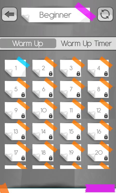 1. Aufwärmen - Spielen Sie 100 verschiedene Stufen im Modus 'Aufwärmen'. Es wird einfach sein, nur um Sie in die Rille zu bringen!
